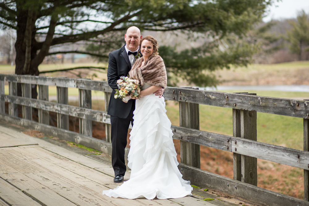 After a few minutes of exchanging private words, we took an adventure on golf carts to Pomperaug golf course, located right next to Heritage Hotel. When Deana had visited the venue, they discovered a neat bridge surrounded by pine trees.