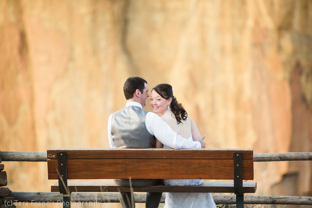 Knowing who I wanted to photograph us was a start. Tara Francis is a wedding photographer who is now out of Bend, Oregon, who I worked for as a second photographer when I first started doing wedding photography (see Blog Post on Wilmes Hops Farm Wedding here). I think Tara has more skill in posing and lighting than me, her work is lovely! I love her gentle but fun approach to posing couples. Plus, she also attended that amazing Erich McVey wedding photography workshop that I was dying to go to. I knew that if I booked Tara, it would be booking for the experience we would be having with her. When I saw her blog post on the photo session at Smith Rock State Park in Terrebonne, Oregon, I knew I wanted her to photograph us. But WHERE? was the question. Aldersgate, our ceremony location, was nice but it would have been crazy for Tara to drive 5 hours roundtrip to photograph us at our wedding ceremony in Salem. Too much driving!