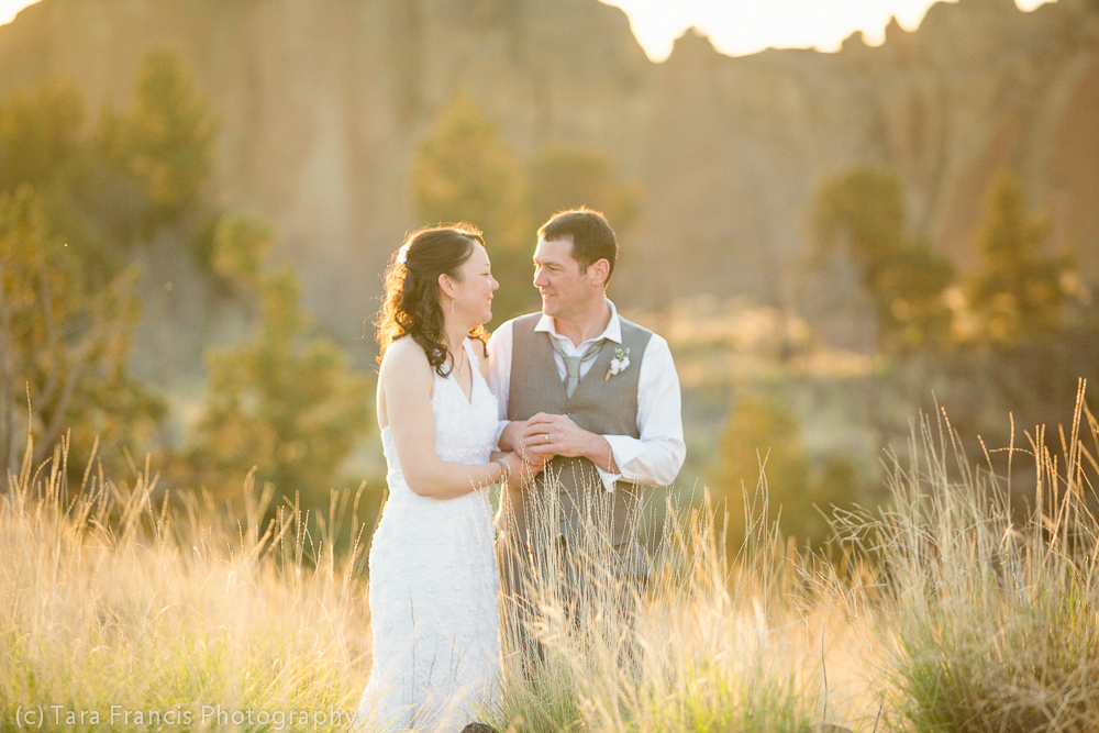 romantic wedding pose at Smith Rock State Park